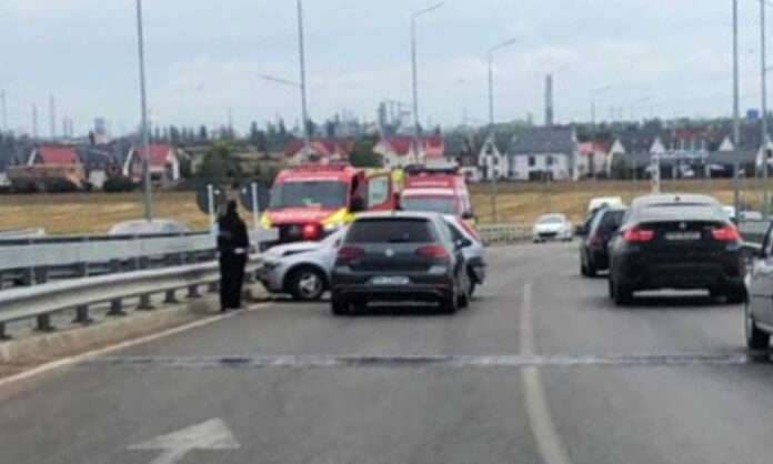 DN1 B: Un autoturism a intrat în parapetul de pe pasajul giratoriu dintre Ploiești și Păulești