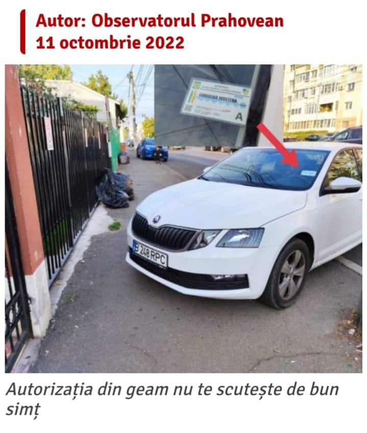 Permisul pe care scrie ”Consilier județean” este unul care permite dreptul de a parca doar în perimetrul Palatului Administrativ. Și dacă ar fi permis parcarea fără plată chiar și în alte zone din Ploiești, în niciun caz nu conferă dreptul de a parca neregulamentar, în bătaie de joc și dispreț profund față de trecători, dezvaluia Observatorul Prahovean.