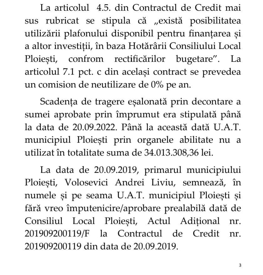 Mai mult, la data de 05.10.2022, consilierii locali au fost pacaliti sa emita Hotararea nr 463, prin care i se aproba edilului Andrei Volosevici sa semneze prelungirea actului aditional cu BCR, o prelungire si act aditional semnate de acesta ILEGAL inca de la data de 20.09.2022, fara aprobarea Consiliului Local Ploiesti.