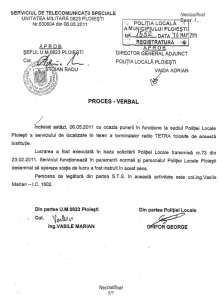 Notă: CHIFOR GEORGE IONUȚ a semnat, totuși două procese verbale de predare primire: Procesul verbal de punere în funcțiune a serviciului de localizare în teren a terminalelor „Tetra” încheiat între Serviciul de Telecomunicații Speciale prin col. VASILE MARIAN (nr. 630604/06.05.2011) și Poliția Locală Ploieșți, prin CHIFOR GEORGE (nr. 1552/10.05.2011) și Procesul verbal de punere în funcțiune a serviciului de comunicații de buclă locală pentru aplicația de management a serviciului AVL încheiat între aceleași instituții prin CRIȘU SEBASTIAN de la STS (nr. 630580/29.04.2011), respectiv nr. 1480/05.05.2011 la Poliția Locală Ploieșți, prin CHIFOR GEORGE.