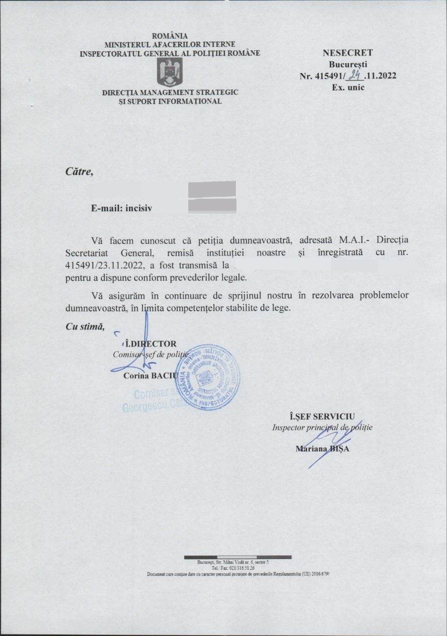 Si MINISTERUL AFACERILOR INTERNE a confirmat, inca o data, prin adresa nr 27078/19.12.2022, ca reprezentantii Recop Recycling SRL Pleasa au incalcat LEGEA!
