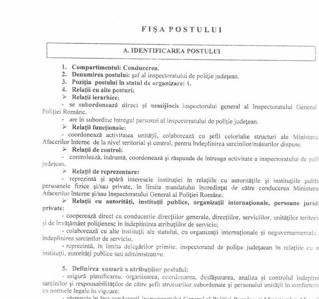 Pentru curiosi, in foto aveti o fisa de post pentru sef IPJ! Observati ca sunt bune orice fel de studii superioare. Merge inginer de orice fel, teatru, pictor, popa, orice! Posibil ca toate facultatile astea sa aiba un modul, in anii de studii, pregatitor pentru functia de sef peste politisti.