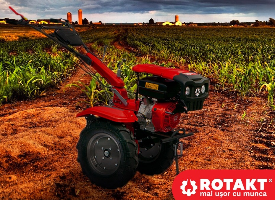 Motorizarea. Aici, trebuie să ai o idee cu privire la calitatea solului pe care vrei să îl lucrezi deoarece, cu cât este acesta mai dur, cu atât va necesita o motorizare mai puternică. Alege o marcă recunoscută cum este Rotakt pentru a avea garanția calității și fiabilității. În privința motorului ai la dispoziție două variante, pe benzină sau diesel.