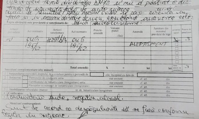 Umilirea si musamalizarea ordinara a continuat. In momentul cand jurnalistul nostru se afla cu spatele, asezat pe scaunul de la biroul de la intrare pentru a completa declaratia, agentul Palas Tiberiu a strigat ca persoana care a condus autoturismul volkswagen are alcolemia zero, „uitati”, chiar daca jurnalistul nostru era cu spatele.