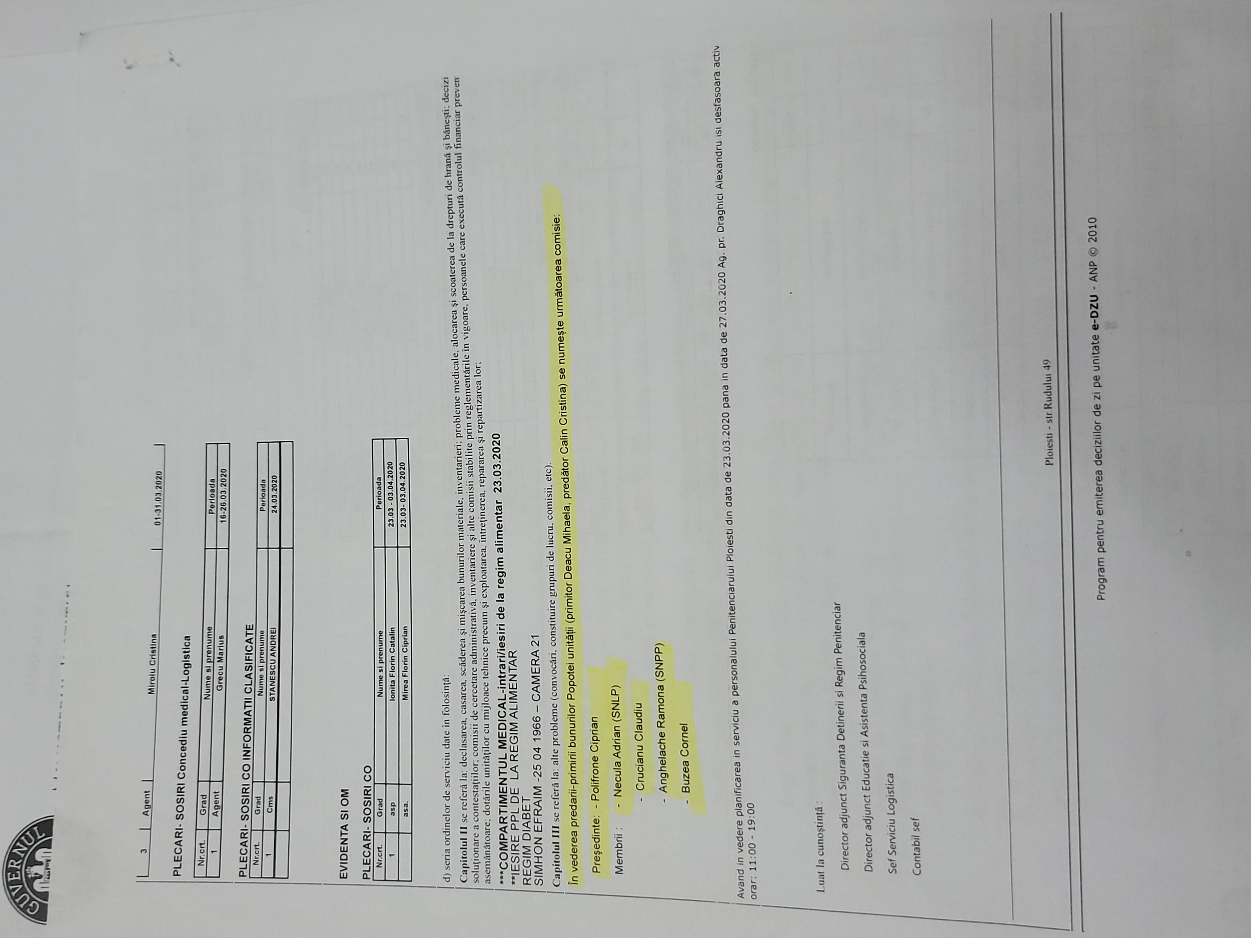 În dimineața zilei de 23.03.2020 în loc să facă inventar conform prevederilor legale, pentru a-și arăta puterea de Regină ordonă ilegal lui Buzea Cornel să spargă popota unității și să fure documentele personale justificative ale persoanei prejudiciate  între care se afla și o sumă de bani.