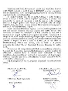 Prin acest contract de credit nr 20/909200119/20.09.2019 si prin caietul de sarcini ce a stat la baza procedurii de achizitie privind contractarea imprumutului, la art 4.5 se specifica: