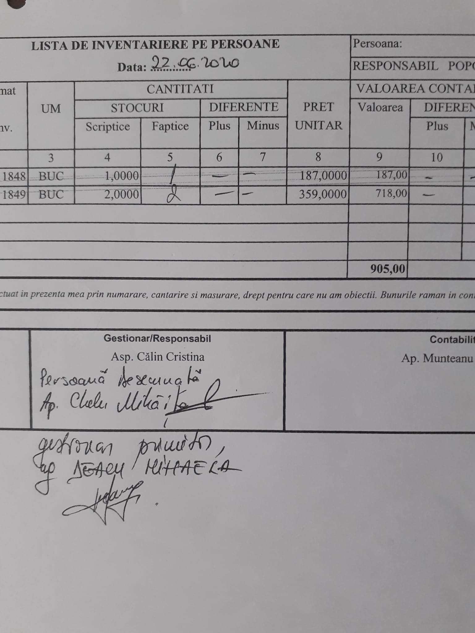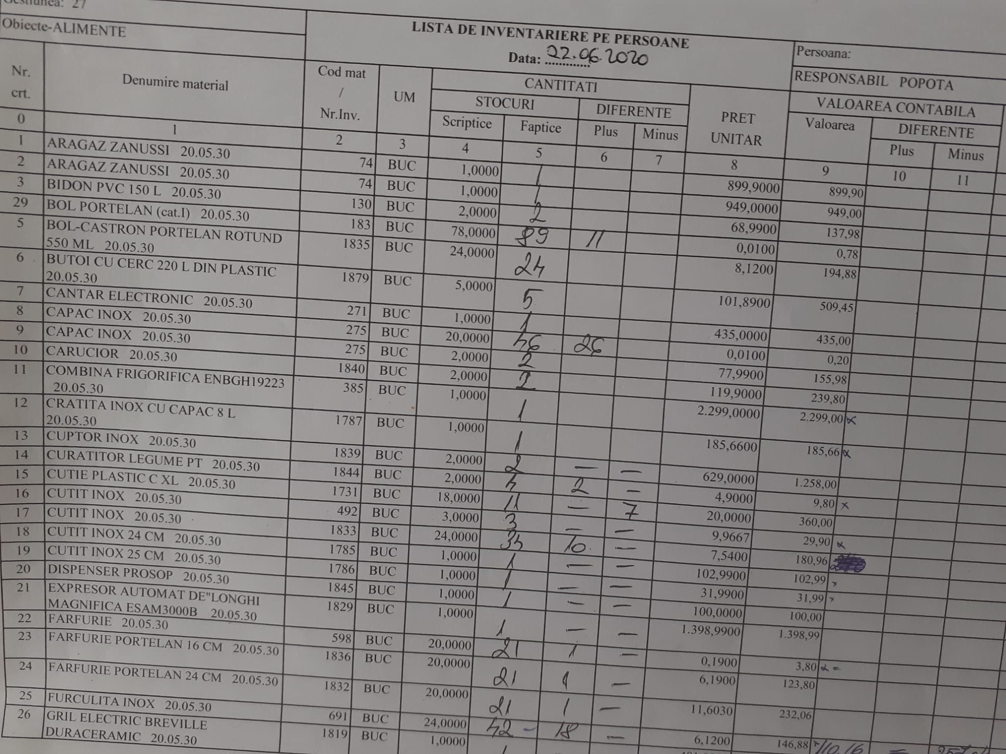 Maică stareță!Luminați-ne! ,,De ce în listele de inventar cu obiectele de inventar unde ați găsit plusuri , nu ați completat rubricile cu valoarea contabilă plusuri și valoarea de inventar ? Dar la obiectele cu diferențe în minus , exemplu dozator săpun, rubricile sunt completate. Ce s-a urmărit?”