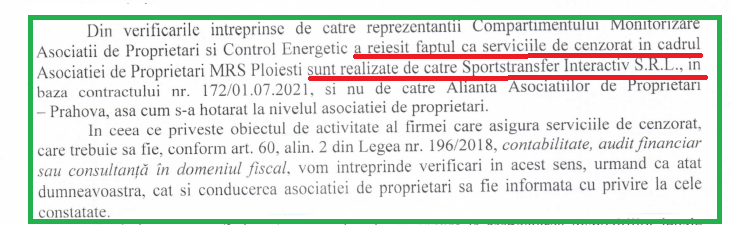 Stimați cititori din Prahova și alte județe, acesta este motivul pentru care aveți nevoie de un cenzor din Asociația dvs. Un cenzor pe care îl puteți trage la răspundere! Sau măcar să îi bateți obrazul.