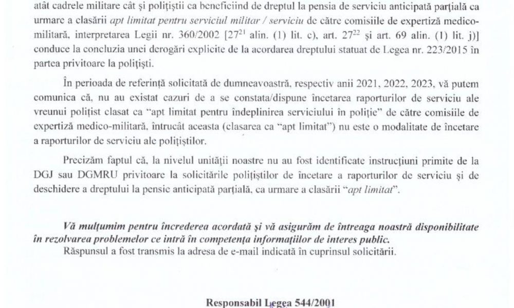 Având în vedere Adresa nr.39/23.03.2023, comunicată  prin salariatul Serviciului Resurse Umane, Organizare şi Administrativ în data de 24.03.2023, ora 8.15, cu termen  de răspuns  24.03.2023, ora 13.00, vă aduc la cunoştintă următoarele aspecte: