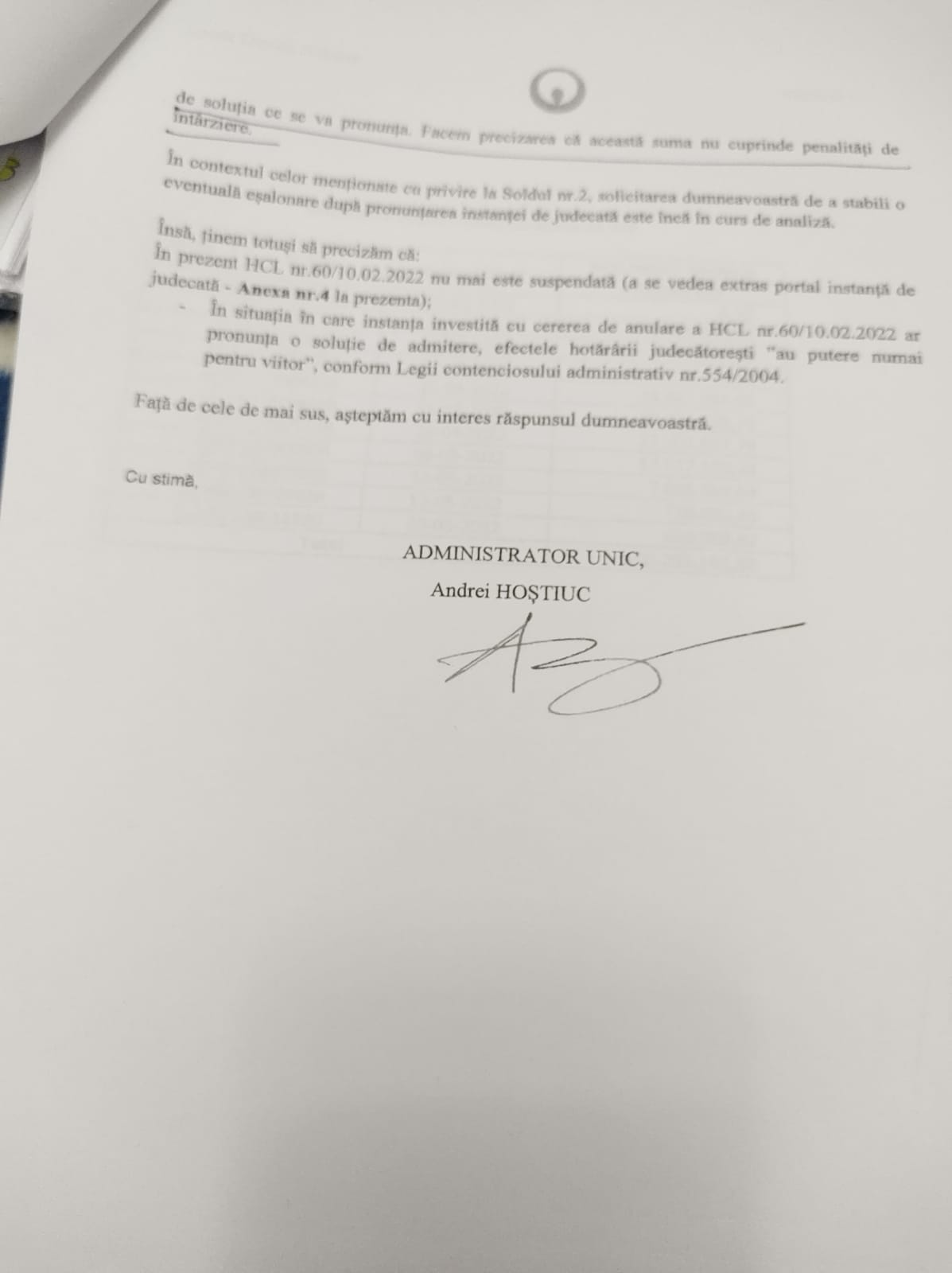 Va mai spune Veolia că nu știați tot în adresa din 1 martie că, „in prezent HCL 60 din 10 februarie 2022 nu mai este suspendată”…Stiați?