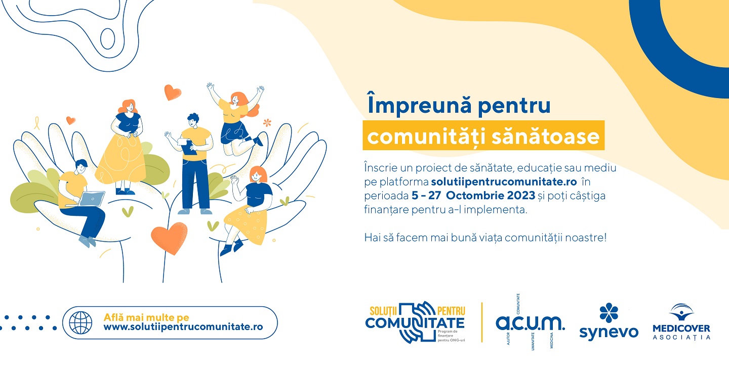 București, 3 octombrie 2023 – Synevo România, liderul pieței locale de servicii de diagnostic de laborator, inițiază, cu sprijinul Asociației Medicover, a doua ediție a inițiativei „Soluții pentru Comunitate”. Aceasta reprezintă un efort concentrat de-a lungul unui an de zile pentru a scoate în evidență, sprijini și finanța și concretiza zece proiecte remarcabile ce vizează educația, sănătatea și protecția mediului.
