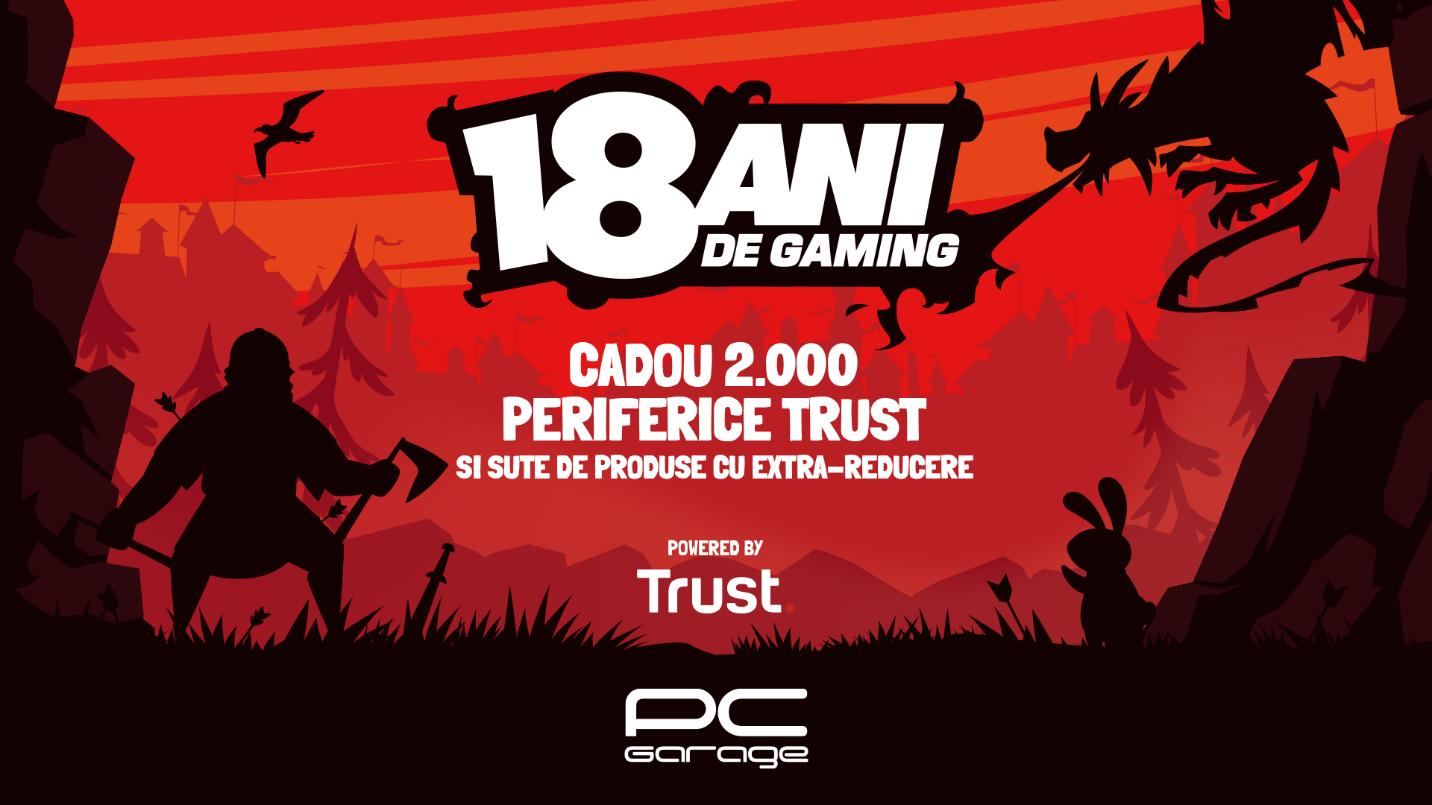 București, România – PC Garage, unul dintre cele mai mari magazine online de produse IT și electronice din România și în același timp un reper pentru toți cei pasionați de tehnologie, sărbătoreşte 18 ani de activitate oferind clienților periferice cadou de la TRUST, dar și super promoții pentru numeroase produse. Astfel, în perioada 16-18 octombrie 2023, clienții PC Garage vor avea super preţuri la anumite game de produse și pot primi gratis periferice de gaming TRUST.