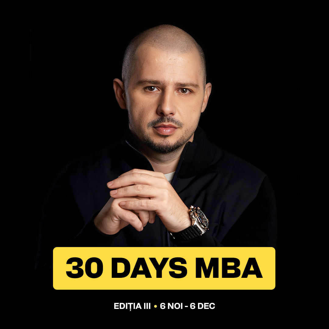 30 Days MBA reprezintă o oportunitate unică pentru antreprenori, manageri și angajați de a beneficia de expertiza lui Răzvan Căzănescu în domeniul businessului. Temele de discuție sunt managementul creșterii (unde vor fi acoperite subiecte precum întâlnirea trimestrială, obiective măsurate prin rezultate cheie, evaluarea performanței), managementul operațional (unde vor fi acoperite subiecte ca măsurarea performanței prin intermediul responsabilităților specifice, evaluarea corectă a performanței, proceduri și training) și managementul oamenilor (procesele corecte de recrutare, promovare și concediere).