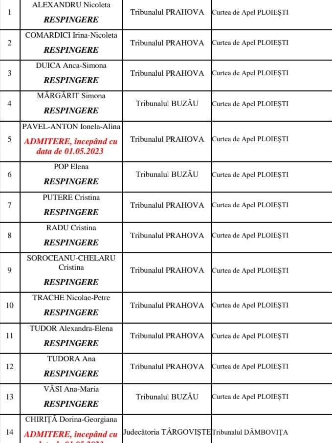 In drept, gurile rele din anturajul strict al acesteia (Tribunalul Prahova) ne-au confiat ca, judecatoarea, „saraca”, a incercat sa scape de acest dosar datorita „presiunilor celor implicati” in deschiderea actiunii, incercand chiar sa solicite o „promovare” /transfer la Curtea de Apel Ploiesti, demers refuzat la 28 martie 2023 de Sectia pentru Judecatori a C.S.M.