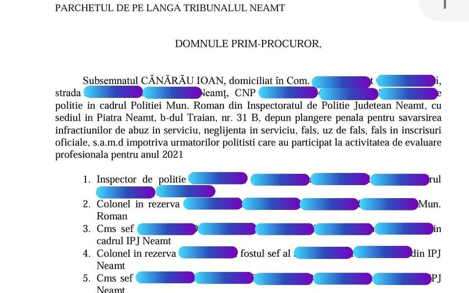 Unul dintre cei mai cunoscuți (și cei mai hărțuiți) polițiști din Neamț, lider al Sindicatului Europol, Ioan Cănărău, a obținut în instanță o victorie împotriva Poliției Neamț, care ar putea deschide o adevărată cutie a Pandorei, dezvaluiam la acea vreme.. Potrivit Europol Neamț, judecătorii au anulat fișa de evaluare întocmită de șefii polițistului pe numele acestuia, pentru activitatea din anul 2021, pentru care a primit calificativul ”satisfăcător”. Evaluarea a venit ca urmare a cererii lui Cănărău de a i se acorda un salariu de excelență după o intervenție dificilă într-un apartament din Roman, unde un bărbat și-a înjunghiat cele două fetițe gemene, una dintre ele murind pe loc, și a fost la un pas să-și ucidă și fiul și soția.