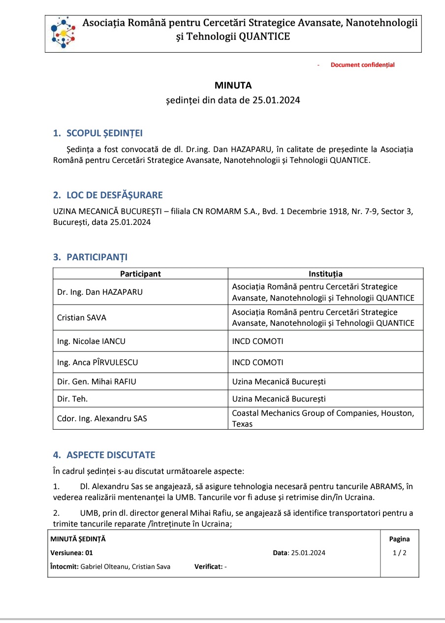 Ancheta noastra jurnalistica, sprijinita de experti in sectorul de aparare a descifrat, precis, adevarate planuri si intentii ale vectorilor implicate in mod active si care staruie si persevereaza in actiunile lor de subminare a acestui sector strategic, de atatia ani, sector care s-a consacrat prin distrugerea totala, ireversibila a ca[acitatilor de aparare a Romaniei, situatie cunoscuta, in fond, de partenerii strategici si de aliatii Romaniei care s-au edificat, pe deplin cu privire la actiunile de complot sistematice care au condus la distrugerea sectorului de productie militara a ttarii, dar si continuarea, in desfasurare, prin diferite forme, a unor entitati, romanesti si straine care, prin repreentanti, la varf, consacrati ca specialist in domeniu, contribuie, in present la anihilarea oricarei tendinte de revigorare sau restructurare a vreunui segment al productiei de aparare.