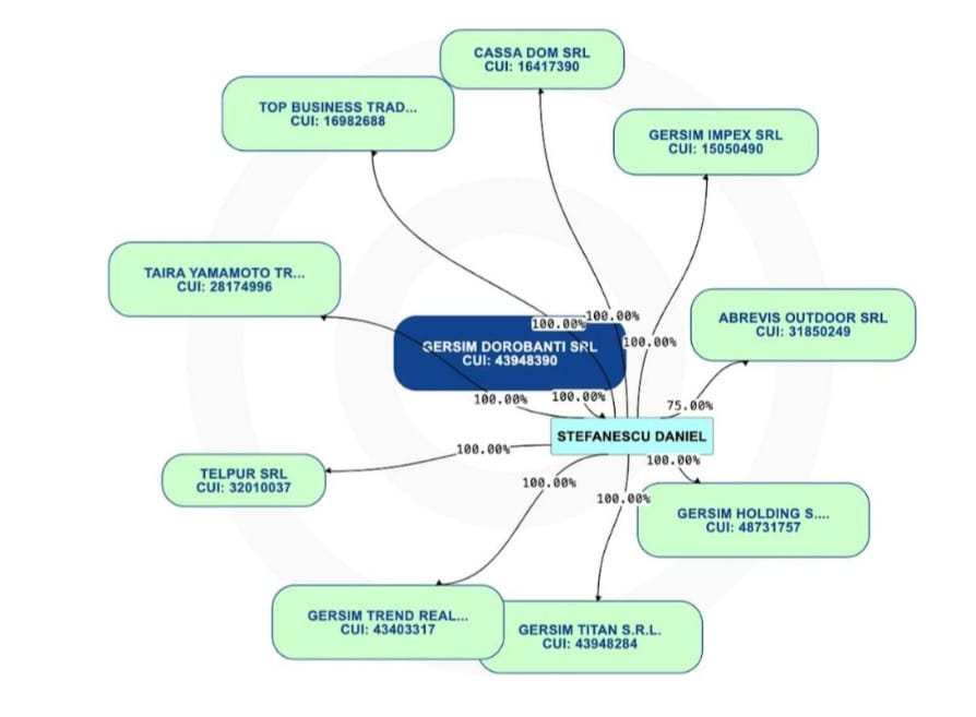 Dacă vom căuta în continuare, aflăm că GERSIM DOROBANȚI are două filiale: GERSIM INTERNAȚIONAL si GERSIM REZIDENȚIAL. Asociatul celor două firme este DANIEL ȘTEFĂNESCU, un nume cunoscut în lumea distribuției de telefoane mobile din România, considerat a fi un om de afaceri extrem de serios.
