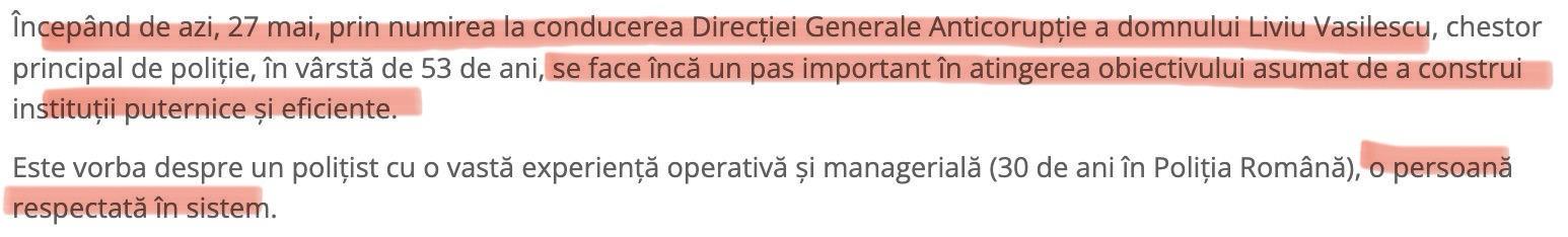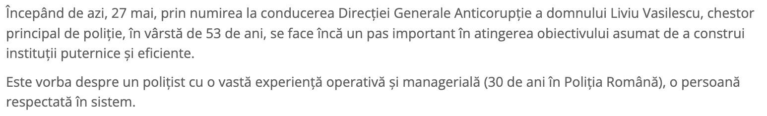 Așadar, dacă în principala și singura structură specializată de anticorupție din MAI, sunt atent aranjate fișele de post pentru a se potrivi cu cel care urmează să fie numit, chiar cu riscul de a duce în derizoriu munca a mii de oameni care anterior au creat un renume pentru DGA, cum să mai vorbim despre integritate, etică și deontologie profesională la nivelul unor structuri mai mici?! Pentru împuternicirea lui Liviu Vasilescu a fost modificată fișa postului, arbitrar și subiectiv, doar ca studiile acestuia să se potrivească cu cerințele de ocupare.