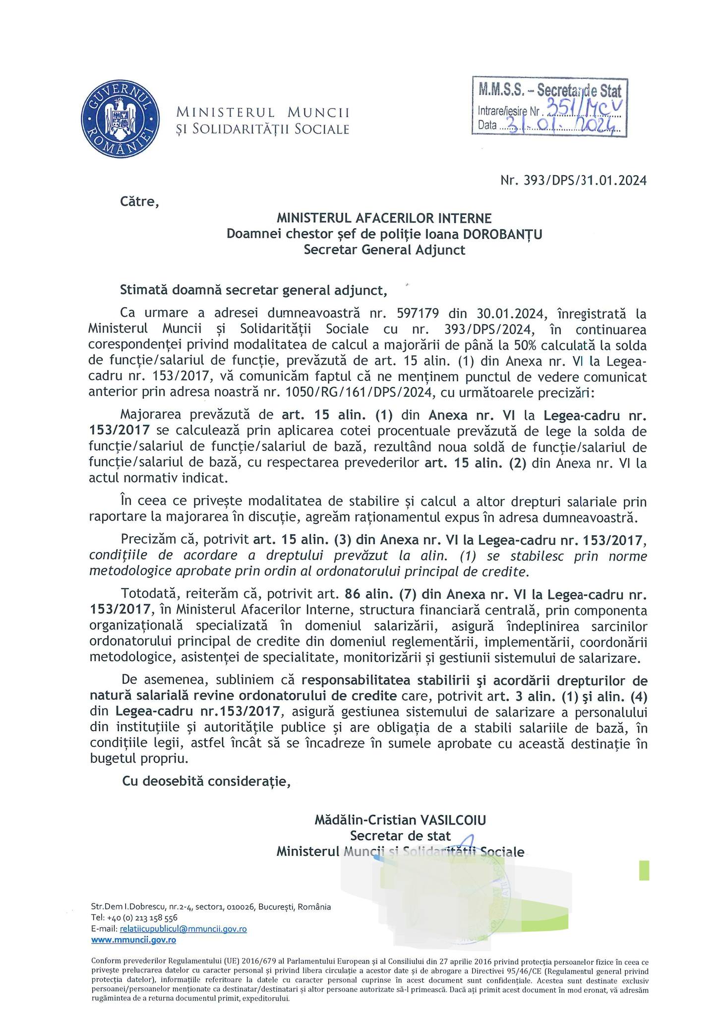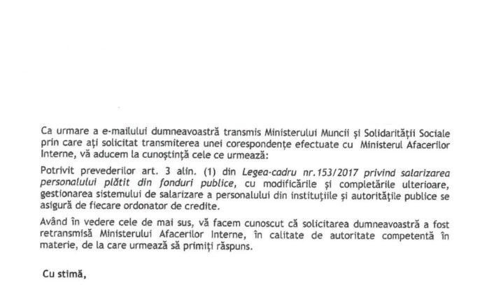 Adresa Ministerului Muncii catre MAI referitor la excelenta!