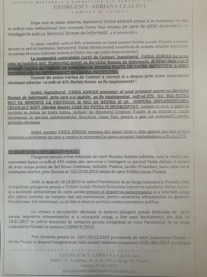 Vă prezentăm câteva fragmente din plângerea penală aflată pe masa procurorilor ploieşteni. Vom reveni cu un caz halucinant prin care un alt politist local a fost executat, in anul de gratie 2024, cam pe aceeasi metoda, dupa ce a atras atentia ca Politia Locala Ploiesti incalca legea si isi aroga atributii ale Politiei Nationale! (Cerasela N.).