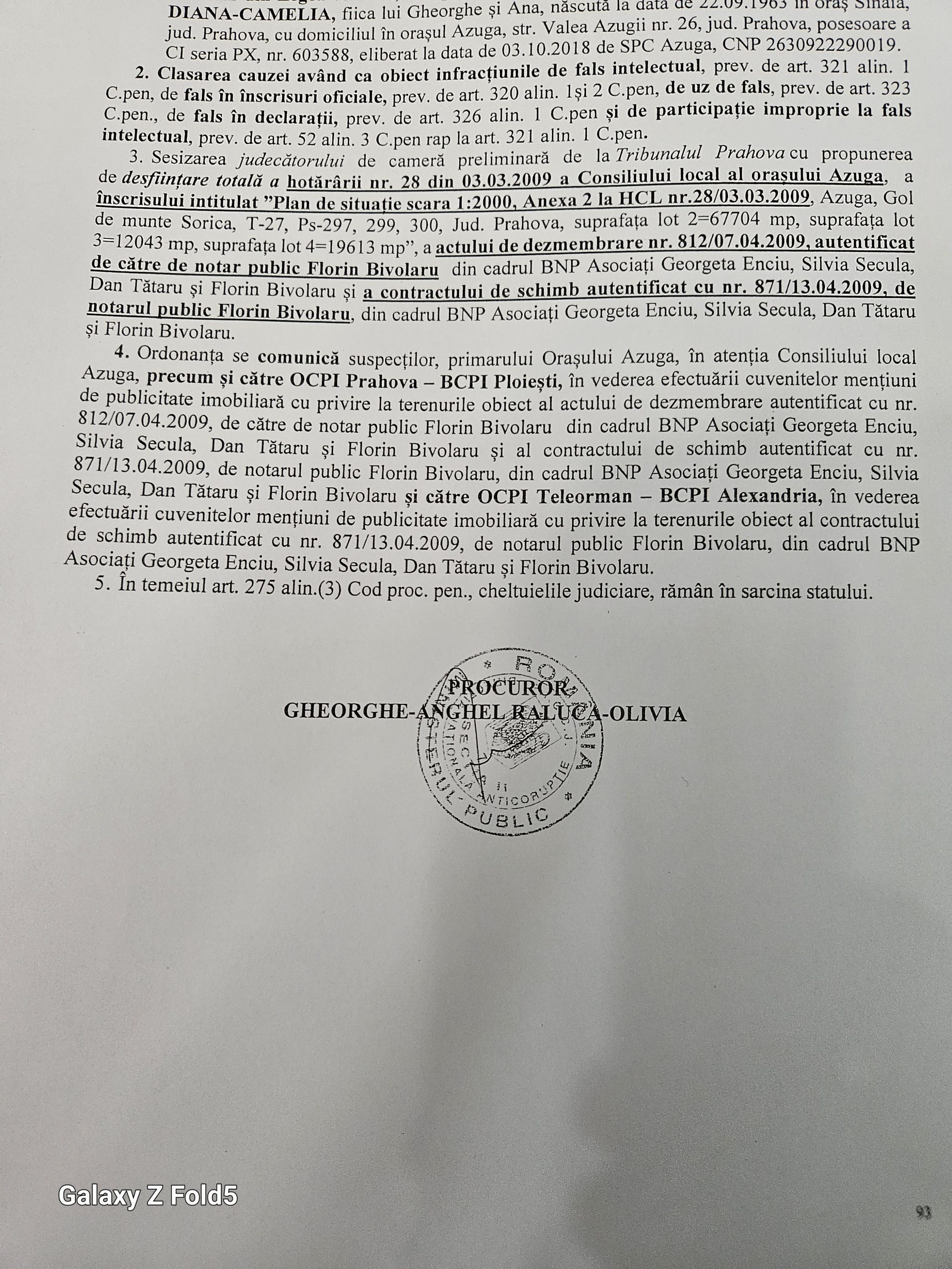 Ca lucrurile au fost penale reiese si din faptul ca, terenurile furate de Purcaru pentru mafie se vor intoarce in patrimoniul Primariei Azuga, conform dispozitiiloe organelor de cercetare penala.