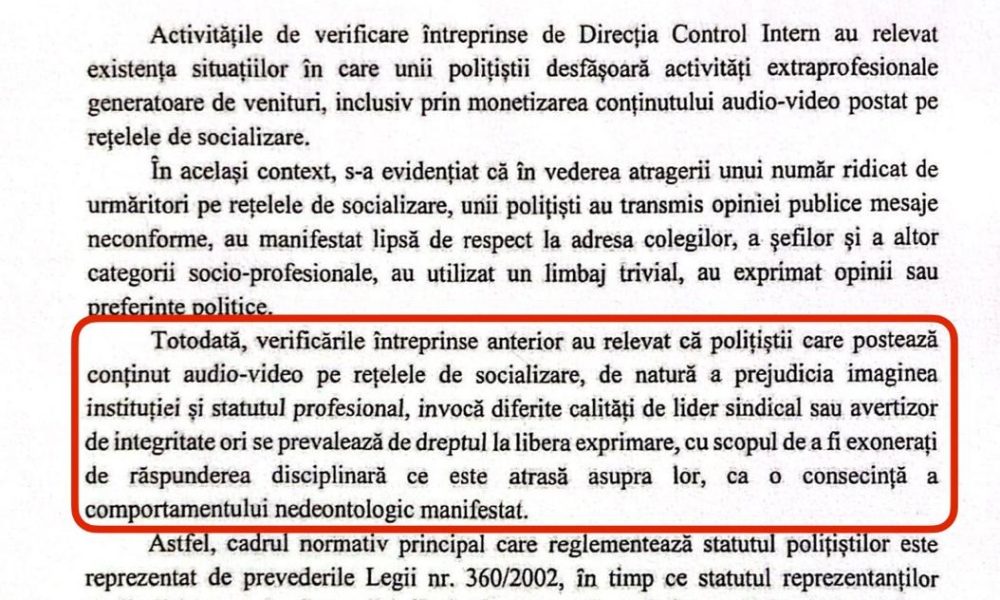 Conducerea Poliției Române face referire la așa-zise „verificări” din partea Direcției Control Intern, dar este îngrijorător că nu se iau măsuri împotriva polițiștilor care au comis abateri reale, ci are loc o campanie de intimidare generalizată asupra celor care își exprimă opiniile în mediul online.