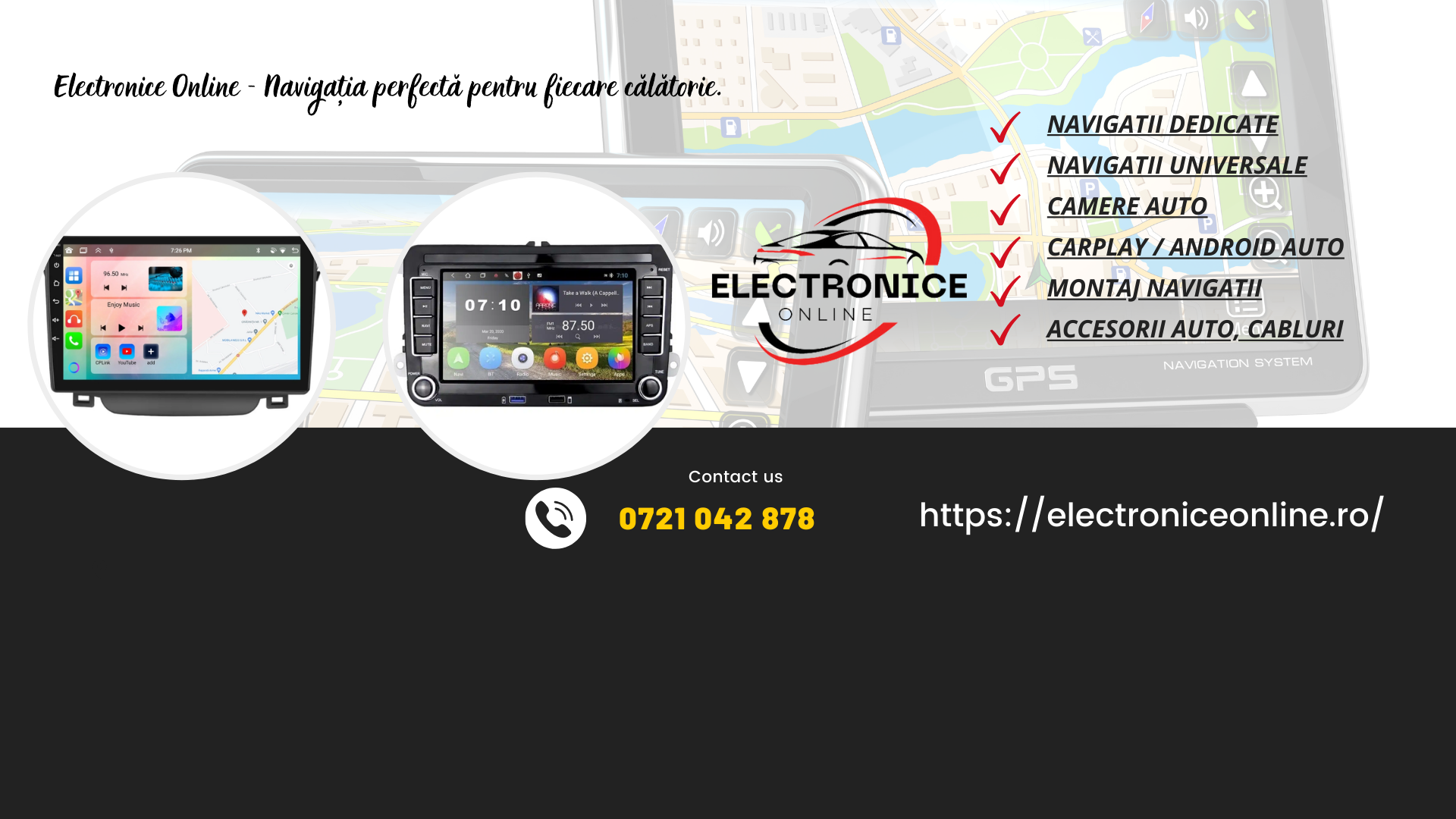ElectroniceOnline.ro este un magazin online de încredere, specializat în echipamente electronice auto, care se concentrează pe oferirea de produse de calitate și soluții moderne pentru orice vehicul. Cu o gamă variată de navigații auto, camere de supraveghere, rame adaptoare și accesorii electronice, site-ul se remarcă prin prețuri competitive și suport tehnic dedicat. Cu o experiență vastă pe piața electronicelor auto, Electronice Online își propune să ofere clienților soluții inovatoare care îmbunătățesc siguranța și confortul la volan.
