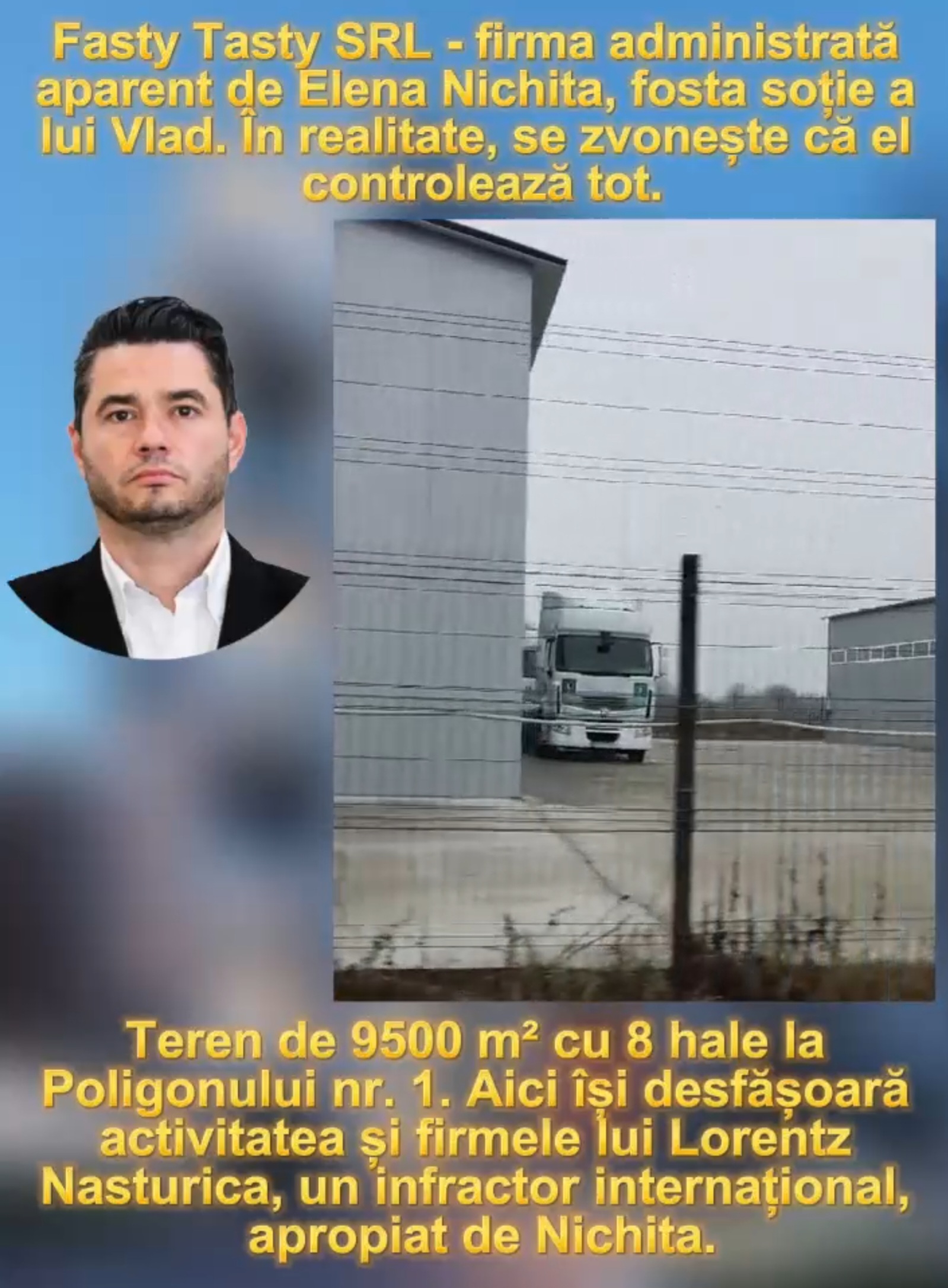 Fasty Tasty SRL este condusă, în aparență, de Elena Nichita, fosta soție a lui Vlad Nichita. Totuși, surse indică faptul că Vlad Nichita este cel care coordonează cu adevărat activitatea acestei firme, iar Elena nu este la curent cu ceea ce se întâmplă în interior. De asemenea, Fasty Tasty se confruntă cu un sechestru asigurător parțial pe un teren de 9.500 m², unde sunt amplasate 8 hale.