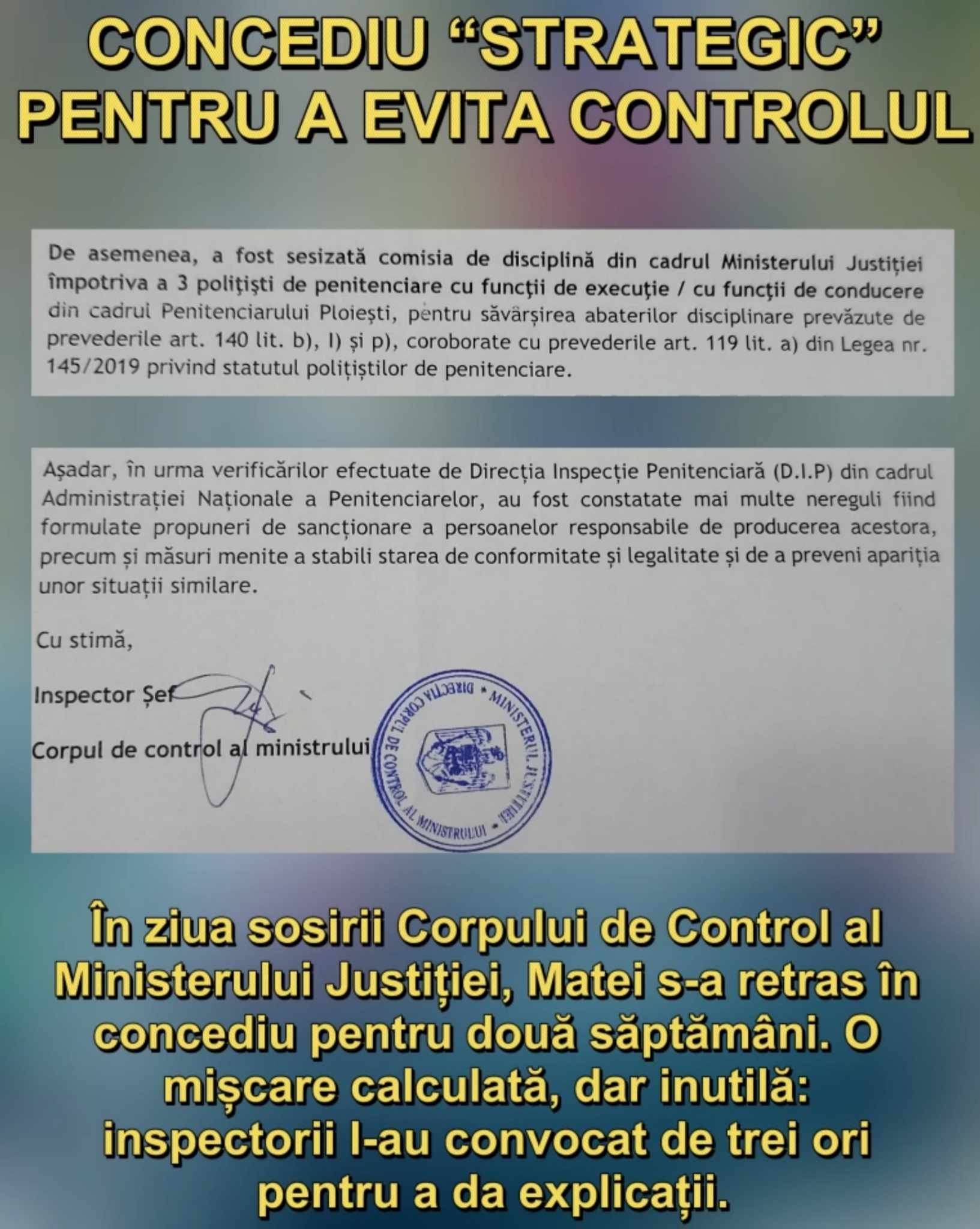 După o lungă perioadă în care am urmărit diverse scandaluri de corupție, cum ar fi cele din Vălenii de Munte și cazul avocatului Vlad Nichita, este momentul să ne întoarcem la directorul veșnic împuternicit al Penitenciarului Ploiești, Valentin Matei. Acesta nu a scăpat de atenția noastră, iar recentele întâmplări ne obligă să-i reamintim numele.