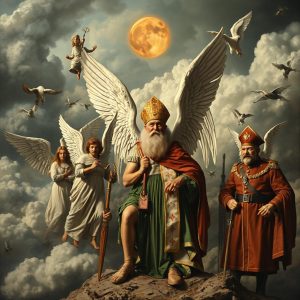 Dar absurdul atinge apogeul odată cu intervenția Arhiepiscopului Teodosie, chemat să interpreteze un desen realizat de îngeri pe pământ. În loc de o schiță de rachetă, prelatul identifică în hieroglifele angelice… un penis. „Asta nu e rachetă, băi fraților. E… un penis”, decretează Teodosie, sugerând o ironie usturătoare la adresa virilității și eficienței sistemului antigrindină.