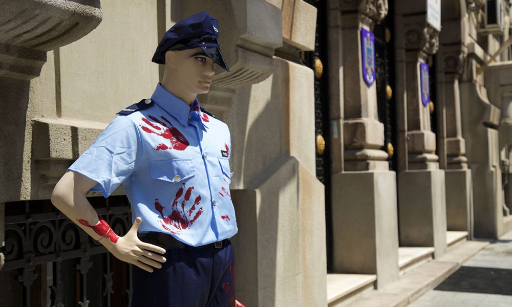 Comunitatea Declic s-a săturat de aplauze la comandă și a decis să stropească puțin sediul IGPR cu realitate – sub forma unui manechin cu uniformă pătată de sânge. Un gest disperat, dar necesar, pentru a reaminti că, uneori, poliția are mai mult sânge pe mâini decât infractorii pe care ar trebui să-i prindă.”