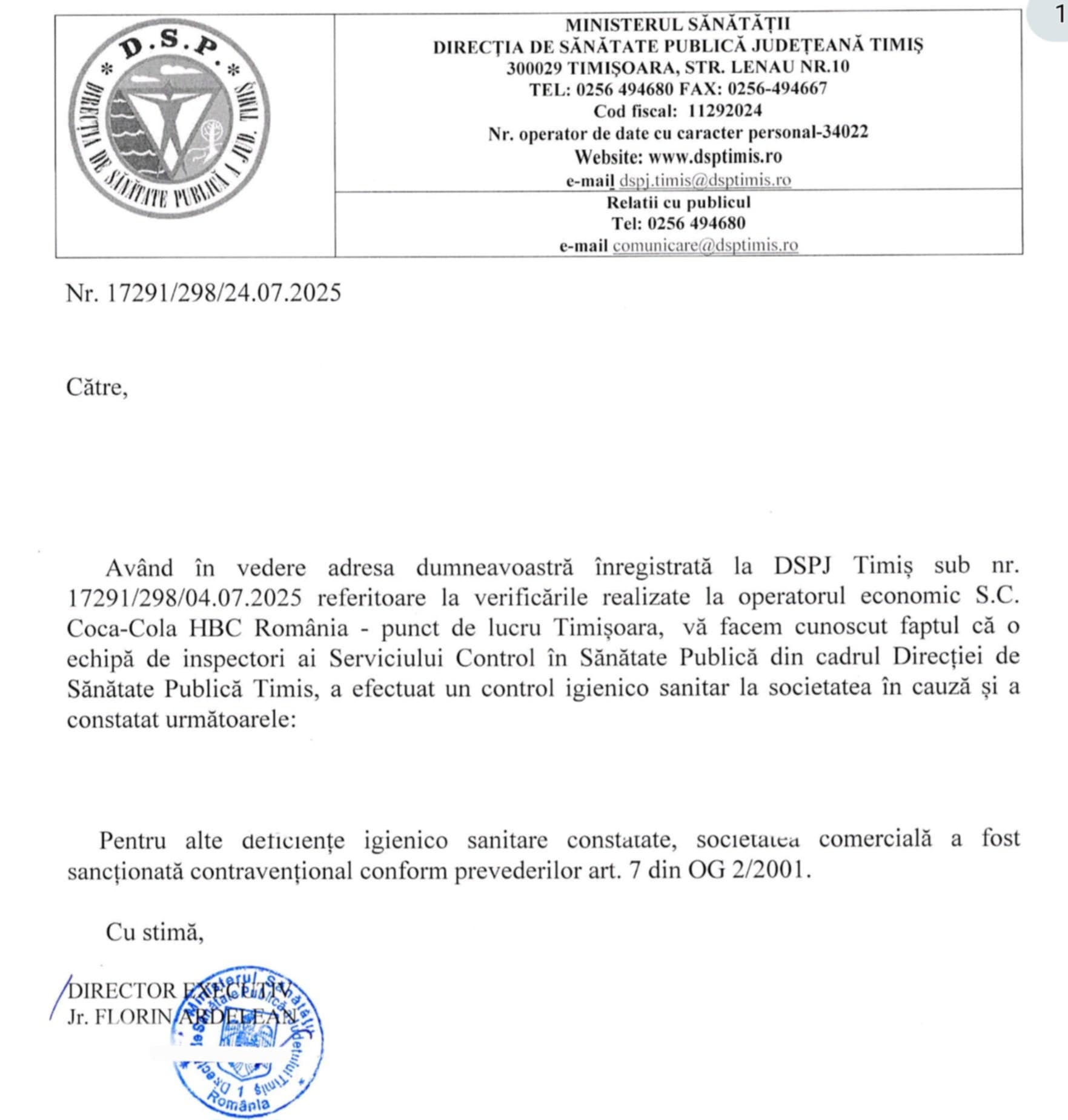 Ce mai încolo și-ncoace, dragi români! În timp ce vă sufocați cu aerul „parfumat” de la Coca-Cola Ploiești, în timp ce autoritățile locale și centrale se calcă pe bombeu ca să protejeze imperiul sifonului, iată că adevărul iese la iveală… la Timișoara! Da, ați auzit bine! În timp ce ITM Prahova își ține dosarele penale la secret, ca pe o rețetă de zacuscă de lux, iar triunghiul „amoros/penal” APM-Garda de Mediu-Coca-Cola își vede liniștit de afaceri, Direcția de Sănătate Publică Timiș a avut tupeul să facă… o inspecție!