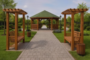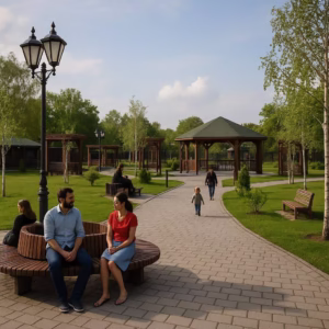 Parcul va avea băncuțe, foișor, stâlpi de iluminat ornamentali, o zonă verde cu iarbă și pomi, zonă de fitness și va fi împrejmuit cu panouri metalice, pe stâlpi fixați în fundații de beton.