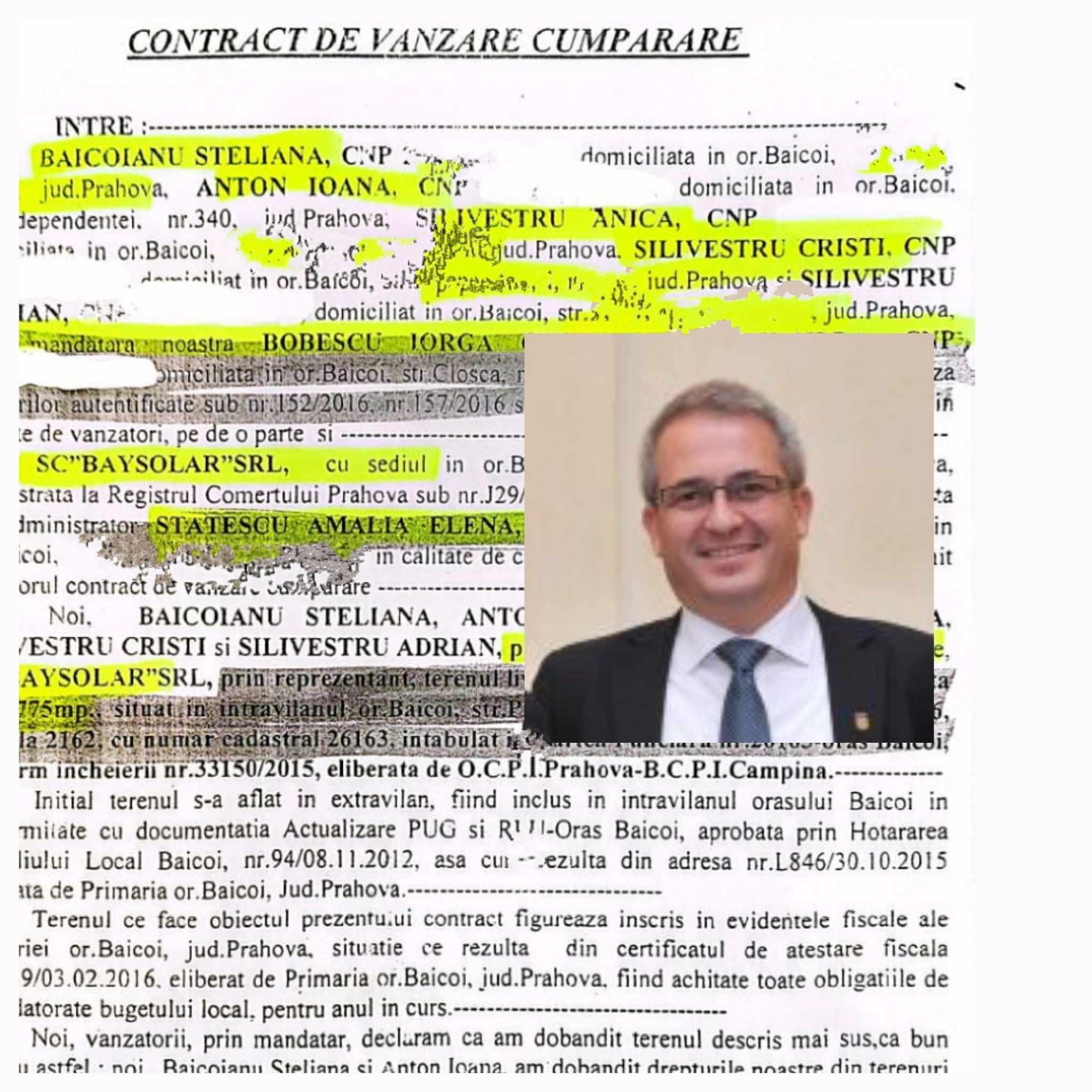 „În anul 2008 când a fost ales primar detinea, conform declaratiei de avere, 7.043 mp teren. In anul 2016, conform declaratiei de avere, detinea 180.274 mp teren, in mare parte intravilan, teren care la un pret mediu de 6 euro/mp valoreaza 1.081.644 euro”, arată sursele Incisiv de Prahova.