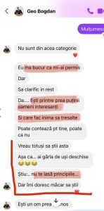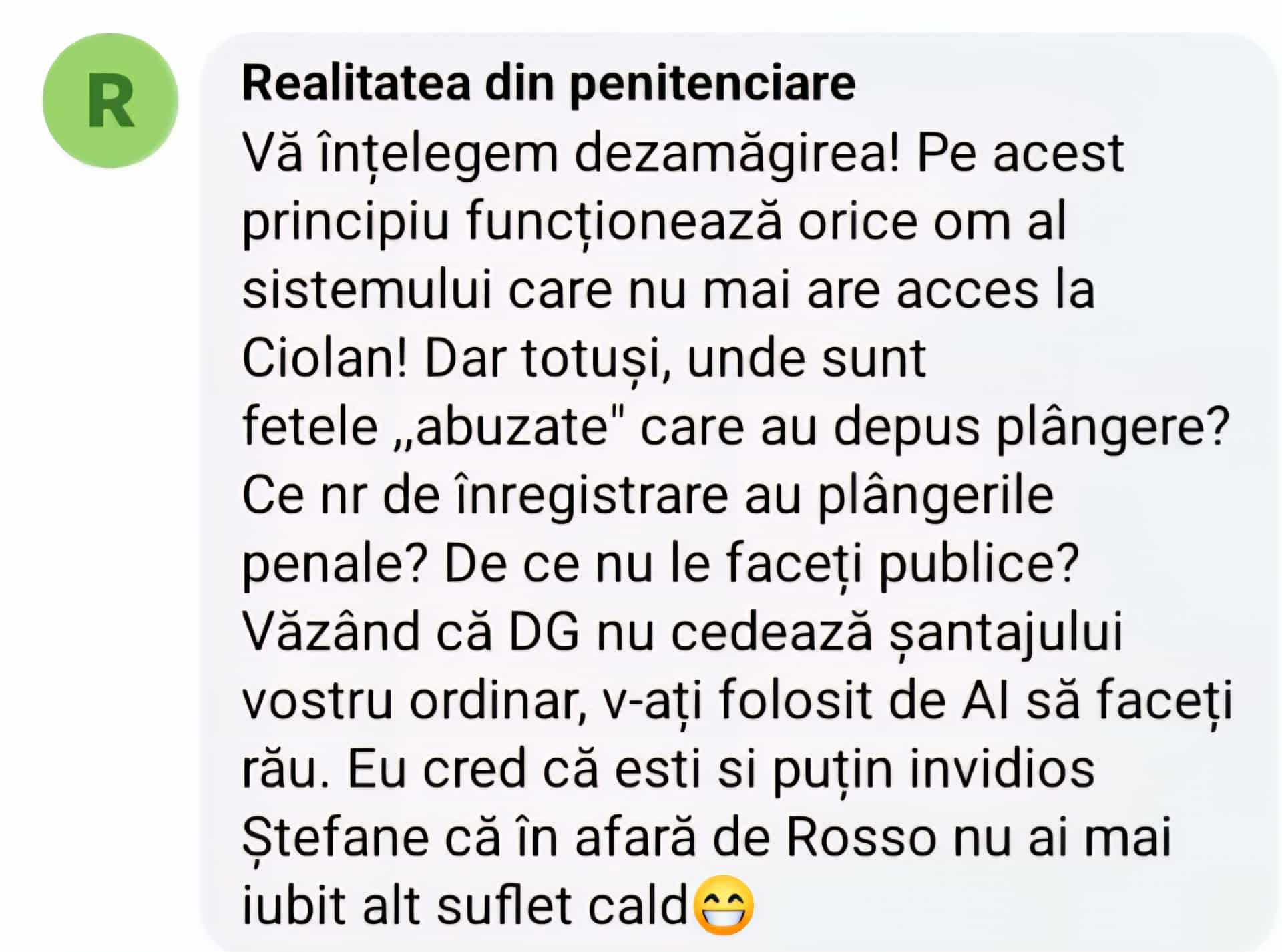 Cireașa de pe tort: „scandalul mesajelor”. Mesaje trunchiate, decupate, aruncate pe bucăți în presă. Nici cap, nici coadă. Nicio plângere oficială din partea vreunei domnișoare. Nicio poziție de victimă. Discuțiile par mai degrabă banale, reciproce, fără niciun refuz, fără niciun „stop”. Dar iată că sindicatul le servește publicului drept „probe de hărțuire”, exact când se clatină scaunele lor de influență. Oare nu e o încercare disperată de a discredita pe cei care le amenință pozițiile?