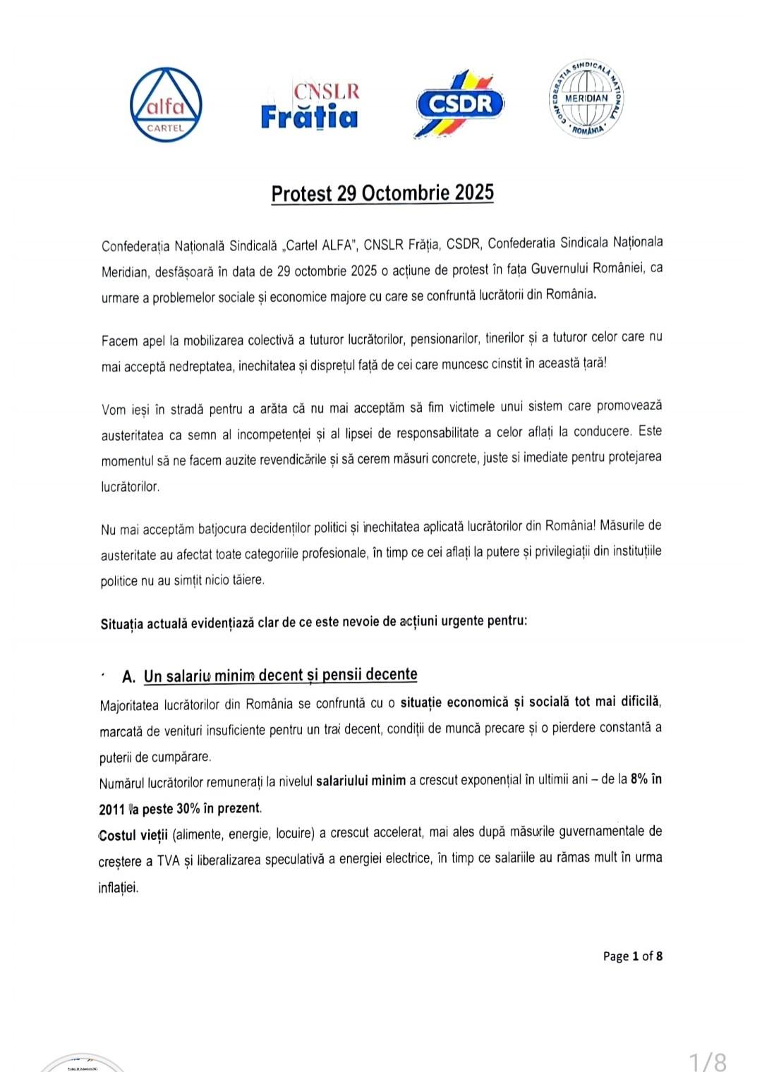 Polițiștilor, soldaților, profesorilor, pensionarilor, și tuturor celor care sunteți tentați să ieșiți în stradă pe 29 octombrie: Gândiți cu capul vostru! Nu vă lăsați manipulați de niște circari care vor doar să-și salveze pielea! Dacă vreți să schimbați ceva, organizați-vă, luptați pentru revendicările voastre concrete, nu vă lăsați folosiți ca masă de manevră într-o bătălie politică! (Cerasela N.).