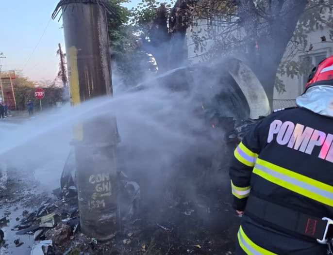 În urma impactului, conducătorul auto a fost proiectat din autoturism, iar ulterior vehiculul a luat foc.