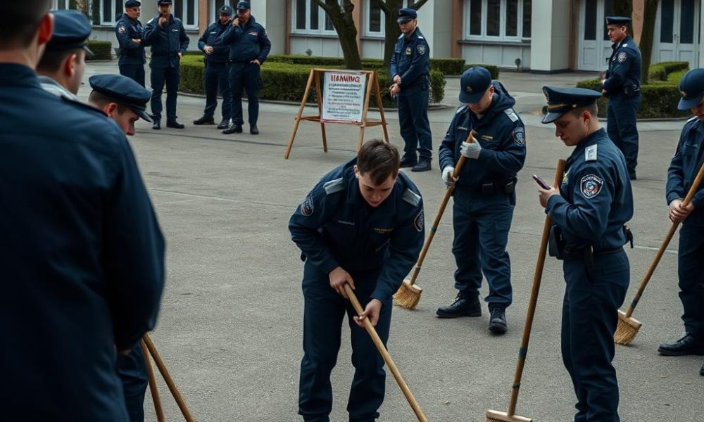 Această prevedere, care se traduce prin corvezi și muncă necalificată (măturat, curățat), este aplicată „pentru întărirea ordinii și a disciplinei”. Potrivit lui Vitalie Josanu, studenții ar putea fi chiar expuși public, pe străzile Bucureștiului, într-o formă de „sperietoare” menită să umilească. Problema fundamentală nu este doar natura anacronică a pedepsei, ci „ilegalitatea sa flagrantă”. Statutul de „student militar” sau „student de poliție” conferă un regim sancționator strict stabilit de legile organice ale Parlamentului (Legea nr. 360/2002 – Statutul Polițistului, Legea nr. 80/1995 – Statutul Cadrelor Militare), unde „executarea unor activități administrativ-gospodărești” NU EXISTĂ. Ministrul Predoiu, avocat de profesie, ar trebui să știe că un Ordin de Ministru nu poate inventa noi pedepse, încălcând o lege organică. Această practică este un abuz, iar „prima lecție pe care o primește viitorul apărător al legii este, așadar, că un ordin intern este superior legii.”