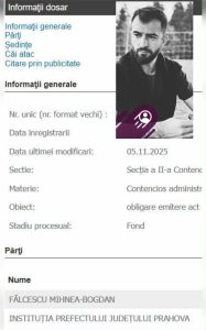 Pe 19 noiembrie 2025, la scurt timp după publicarea primelor dezvăluiri, Bogdan Fălcescu, un antreprenor sinăian cu experiență în administrație, a intentat proces împotriva Prefecturii Prahova. Fără ezitare, a cerut Justiției să constate încetarea de drept a mandatului primarului Oprea. O lovitură directă în plexul „circotecii liberale”! Fălcescu, un vechi luptător împotriva ilegalităților din Sinaia, a demonstrat că un singur om poate zgudui un sistem putrezit.