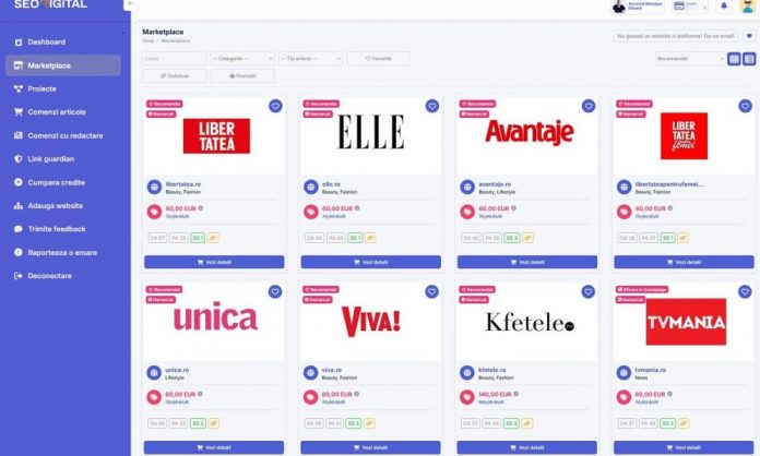 Creată pentru marketeri, antreprenori, agenții și creatori de conținut, SEO Digital reunește într-un singur dashboard întregul proces de publicare advertoriale – de la selecția publicațiilor până la programarea articolelor și monitorizarea linkurilor după publicare. Platforma oferă acces la sute de publicații românești din domenii variate, precum business, sănătate, lifestyle, tehnologie, auto, educație și multe altele.