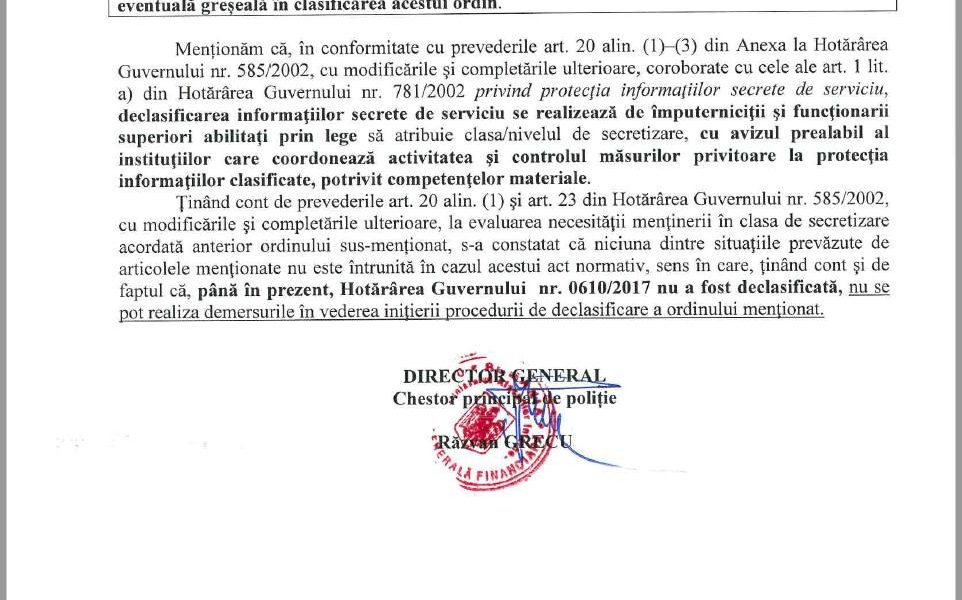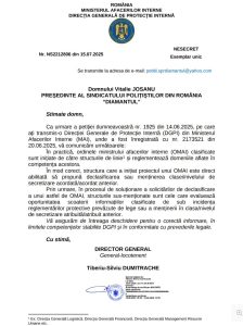 Situația devine și mai complexă prin faptul că, într-un răspuns oficial din 6 iunie 2025 (MAI nr. 453069/06.06.2025), chiar DGF (condusă de Grecu) a recunoscut că „au fost inițiate demersurile necesare în vederea amendării OMAI S/7/2018” pentru a-l pune în acord cu Decizia ÎCCJ 73/2025. Cu toate acestea, la șase luni distanță, „nu s-a modificat nimic”, iar IPJ-urile „continuă să depună întâmpinări în instanță susținând exact opusul”. Aceeași atitudine, descrisă drept „răspuns de prostire”, ar fi fost primită și de sindicatul Prolex.