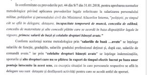 În urma unei întâmpinări depuse de IPJ Vrancea într-un dosar ce vizează „sporul de antenă” (dosarul 589/91/2025, referitor la sporul de antenă), Sindicatul Diamantul dezvăluie că prevederile OMAI S/7/2018 ar fi „ascunse, vătămătoare și contrare legii”. Aceasta vine după ce un scenariu similar a fost semnalat și la IPJ Sibiu. Punctul incriminat, 44.1.1 din anexă, vizează interpretarea „celorlalte drepturi bănești avute”, specificând că acestea nu se plătesc în raport de timpul efectiv lucrat pe bază de pontaj pe perioada concediului, cu excepția delegațiilor sau detașărilor. O interpretare pe care sindicatul o consideră „pagubitoare pentru salariați și contrară jurisprudenței instanțelor europene și naționale”.