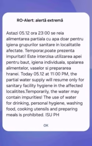 Inspectoratul pentru Situații de Urgență Prahova va transmite mesaje prin sistemul RO-ALERT, cu o periodicitate de 3 ore, cu privire la calitatea apei din rețea, în intervalul orar 6 – 22. O primă avertizare a fost deja trimisă locuitorilor din zonele afectate.