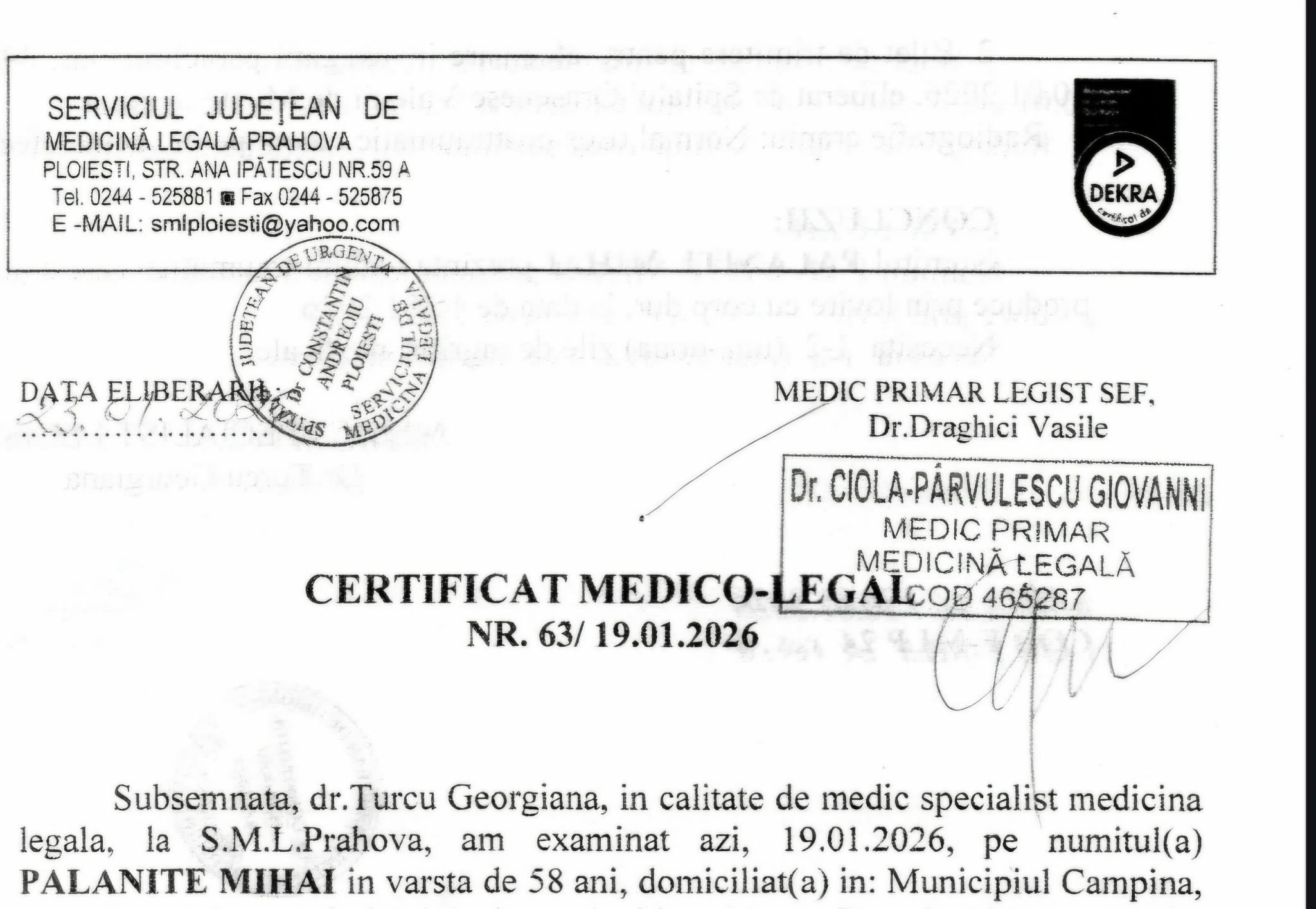 Acest pamflet, bazat pe sesizările și plângerile penale depuse de domnul Palanițe Mihai și doamna Sandu Daniela Luminița la Inspectoratul de Poliție Prahova, Poliția Orașului Vălenii de Munte (Dosar 120/286/P/2026) și STS, este un strigăt de disperare. Un strigăt împotriva unui sistem care pare să-și fi pierdut busola morală, transformând justiția într-un circ privat . E timpul ca „Republica Banana de Văleni” să fie adusă cu forța în statul de drept, iar vinovații să plătească! (Cerasela N.).
