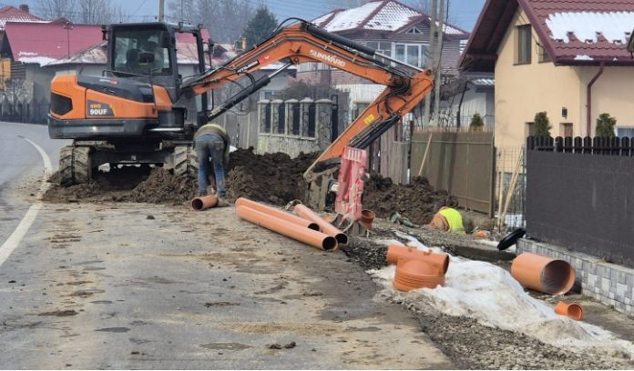 La Măneciu, lucrările sunt în plină desfășurare, ba chiar am putea spune că se menține un ritm alert de introducere a conductelor pentru rețeaua de canalizare. Din totalul de 19 kilometri au fost finalizați 6,5 km și au fost montate și o parte dintre racorduri.