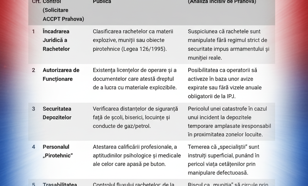 | Nr. Crt. | Domeniul de Control (Solicitare ACCPT Prahova) | Miza Juridică și de Siguranță Publică | Suspiciunea de „Derapaj” Legal (Analiză Incisiv de Prahova) |