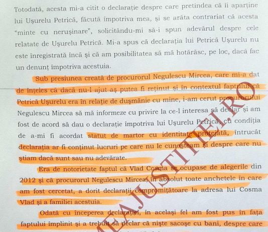 “Negulescu in toate anchetele a dorit declaratii compromitatoare la adresa lui Cosma Vlad si a familiei acestuia”.