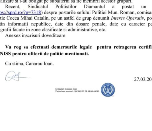După ce articolul Sindicatului Polițiștilor Diamantul a adus la lumină faptul că șeful Poliției Municipiului Roman a înființat grupuri pe WhatsApp pentru a distribui informații nepublice și date din dosare penale, au avut loc reacții controversate din partea unor lideri din cadrul Poliției.