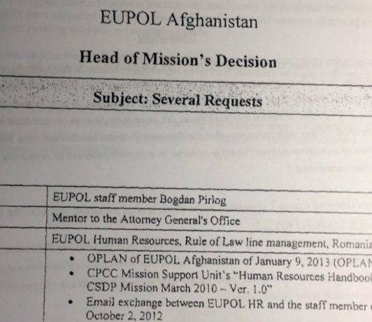 Gasiti mai jos doua scrisori din 2013 trimise autoritatilor romane de Karl Ake Roghe, comandatul EUPOL din Afganistan, in care vorbeste despre comportamentul inadecvat al procurorului Bogdan Pirlog, care a devenit un „liability” pentru Misiune pe perioada cat a fost detasat in Afganistan. In cele din urma comandatul EUPOL...