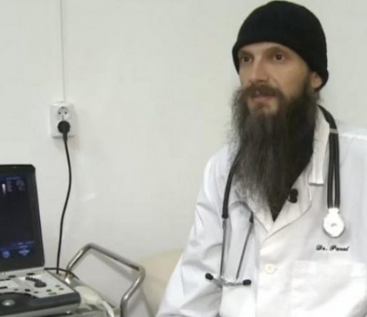 Călugărul Pavel Mincă a amenajat singur într-o clădire veche de la mănăstire run cabinet medical.